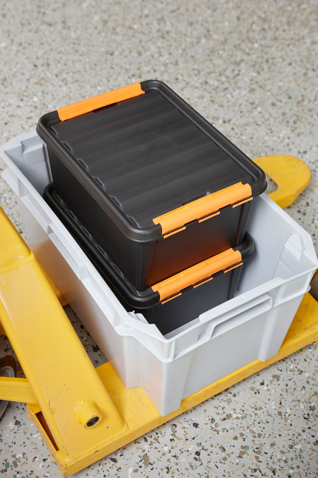 Orthex SmartStore Pro 15 Opbergbox • Kleur: Zwart • L 40 x B 30 x H 19 cm • Inhoud: 14 liter • Gemaakt van BPA-vrij polypropyleen. De reeks SmartStore™ Pro opbergboxen zijn bestemd tegen ruw gebruik! De BPA-vrije stevige opbergdoos is bestand tegen hoge schokken en grote temperatuurschommelingen. Geschikt voor zware en scherpe voorwerpen. Vakverdelers kunnen worden toegevoegd, deze zijn apart verkrijgbaar. De opbergdozen zijn stapelbaar met deksel erop en nestbaar zonder deksel. Perfecte opbergdoos voor zowel doe-het-zelvers als professionals.
